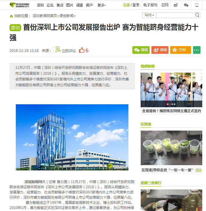 首份《深圳上市公司发展报告》发布 华体会注册智能位列经营能力前十