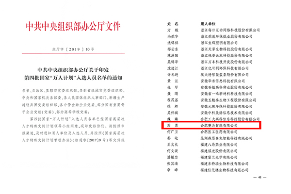 三、周勇董事长入选国家“万人计划”科技创业领军人才