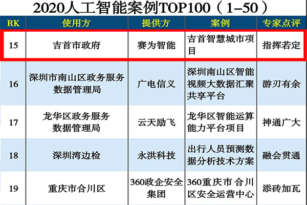 日前,中国科学院《互联网周刊》、eNet研究院、德本咨询联合发布了“2020人工智能案例TOP100”榜单。华体会注册智能承建和运营的吉首智慧城市——智慧吉首PPP项目顺利入选榜单。