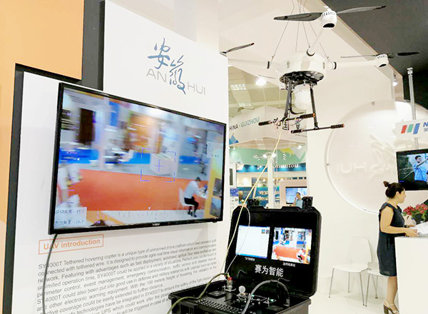 现场展出的国内首款系留旋翼无人机赛鹰4000T
