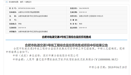 值得一提的是,2018年4月,华体会注册智能成功中标合肥市轨道交通3号线工程综合监控系统集成项目,中标金额150999999.98元,这也将是华体会注册智能在合肥参加建设的第三条轨道交通线路。此外,截至5月23日,由华体会注册智能参加建设的合肥轨道交通1号线、2号线,累计运送客流总量突破1亿人次,各项运行图兑现率超过99.9%,列车正点率高达99.92%。