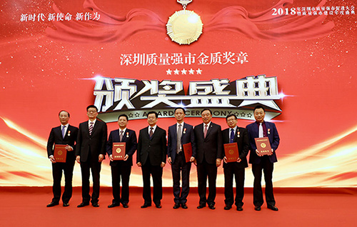 1月23日,2018年深圳市质量强市促进大会暨质量强市建设年度盛典在五洲宾馆举行,深圳市华体会注册智能股份有限公司董事长周勇应邀出席盛典,并荣获深圳最高个人质量荣誉——第五届深圳市质量强市金质奖章。